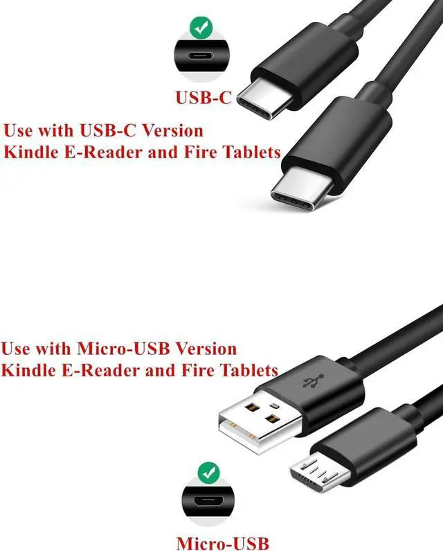 15W Power Adapter Micro-USB Cable for Older versions of kindle e-Readers and Fire Tablets USB-C Cable for New versions of Kindle eReaders and Fire TabletsCompatible with all Fire Tablets and