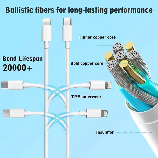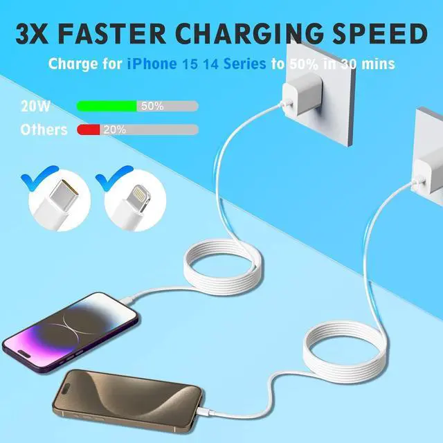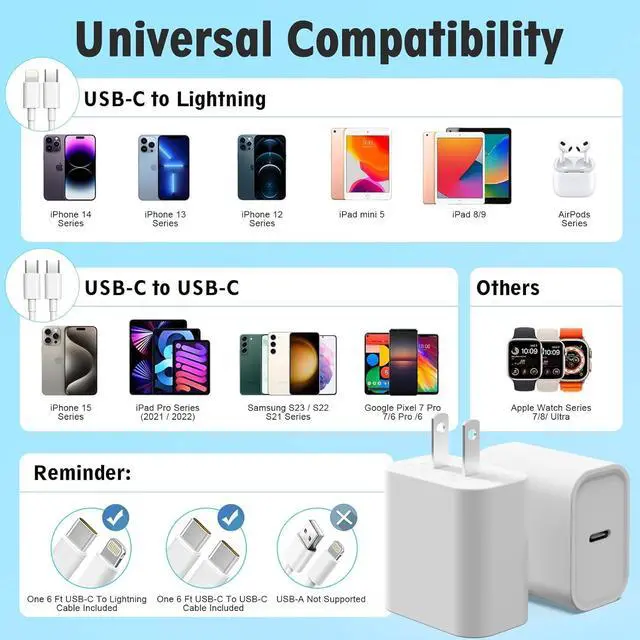 Premium Value: Includes 2x 20W chargers + 2x 6FT cables (Lightning + USB-C) ideal for home office or travel use with lifetime technical supportNote: The data cables included in the charger set are one USB C to Lightning Cable and one USB C to C Cable