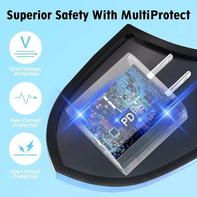 Safe & Reliable: MFi-certified Lightning cable & PD 3.0 USB-C cable ensure 100% compatibility with devices; UL/FCC/CE safety certified chargers prevent overheating2-Pack