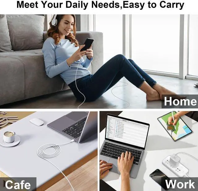 It also provides up to 480Mbps USB 2.0 data transfer. Safety Assurance- Made with high quality heat and flame resistant materials plus many built-in safety mechanisms to monitor heat and circuit abnormalities keeping your devices safe from overheating overvoltage overcurrent and short circuits. Portable Charger- Lightweight stylish compact and small wall charger won't take up any other place on the wall socket plug and play. It is the best choice for your business trip travel office and home. Package includes- 1x20W PD USB-C Wall Charger Block with 1x 6.6F t C to C Charging Cable.
