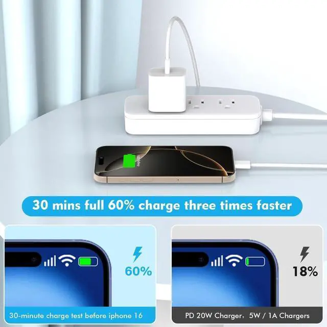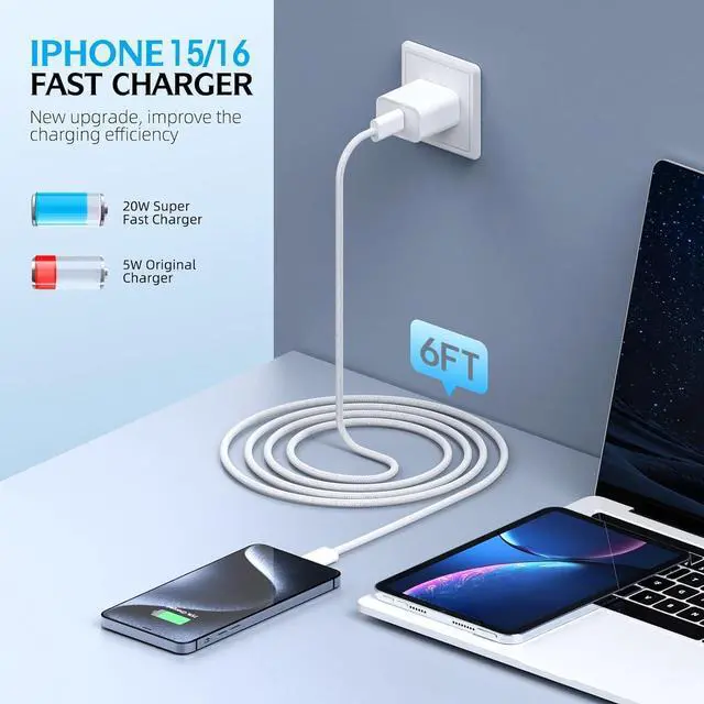 ? 20W Fast Charging TechnologWith Charger iPhone 16 15 you can experience lightning-fast charging speeds for your iPhone from 0% to 60% in 30mins. The advanced technology embedded in our charger allows for efficient power delivery reducing charging time and maximizing convenience.? Safety and Fast iPhone 16 Charger iPhone 16 charger fast charging prioritizes safety with its comprehensive protection system guarding against over-voltage over-charge and over-heating. Equipped with advanced smart chips the iPhone 16 Pro charger intelligently adjusts the current to match your device's needs guaranteeing a rapid and secure charging experience.? 6FT Woven USB-C Charger Cable This 6ft iPhone 16 usb c charger cable is made with a woven design prevents physical compression and more durable to use.