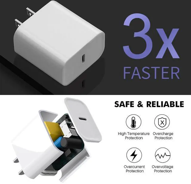 Fast charging kit for new ipad usb-c iphone 15/16 series AirPods 4 with usb-c port. Also compatible with other usb-c electronic devices PD fast charging up to 20wSafe fast charging: power adapter is ETL certified compliant. Housing is flame retardant PC plastic. Built-in smart chip avoids over-voltage over-charging and overheating. Gradually gets warmer with long time full load usage within the ETL specified limit temperature. EXTRA LONG CABLE 10-foot USB-C to USB-C cable Quickly charge your iPad and iPhone over long distances. You can charge and sync at home/office/traveling in bed etc. (With a thick copper cable iPhone 16 won't prompt an error)PD fast charging universality: With the progress of society most devices are gradually transitioning to USB-C ports. This USB-C fast charging case is compatible with iPads iPhones phones Google phones LG phones Android phones/tablets Bluetooth headphones cameras drones etcPackage includes: 1 pack of 10ft USB C to C cable and 20w USB-C PD wall charger