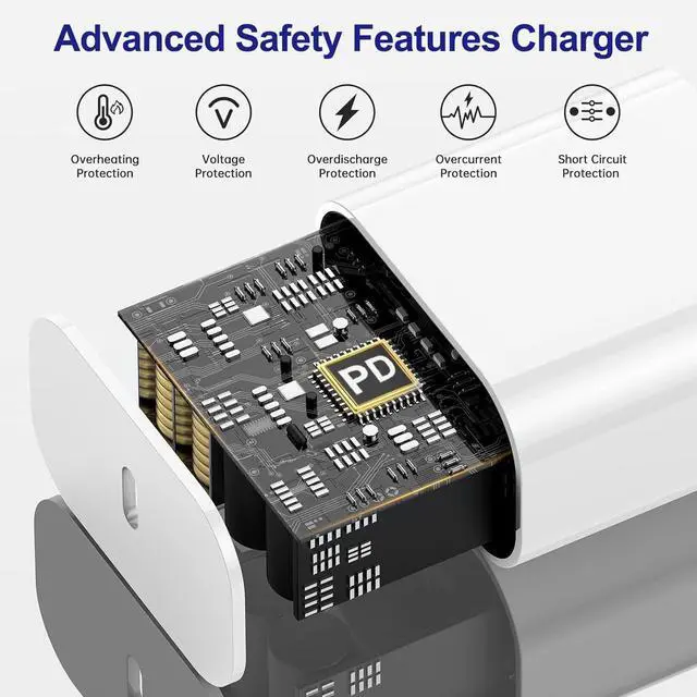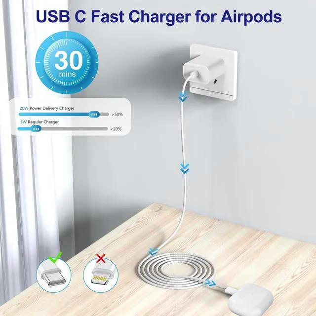 USB C braided cables have been tested to withstand more than 20 000 bends and resist wear and kinksSafety and Fast AirPods ChargerAirPods charger fast charging prioritizes safety with its comprehensive protection system guarding against over-voltage over-charge and over-heating. Equipped with advanced smart chips the AirPods charger intelligently adjusts the current to match your device's needs guaranteeing a rapid and secure charging experience. Package Included1 x 20W AirPods USB C Wall Adapter Block 1 x 6FT USB C to USB C Woven Cable. along with our round-the-clock friendly customer support ensuring a pleasant shopping experience for you.