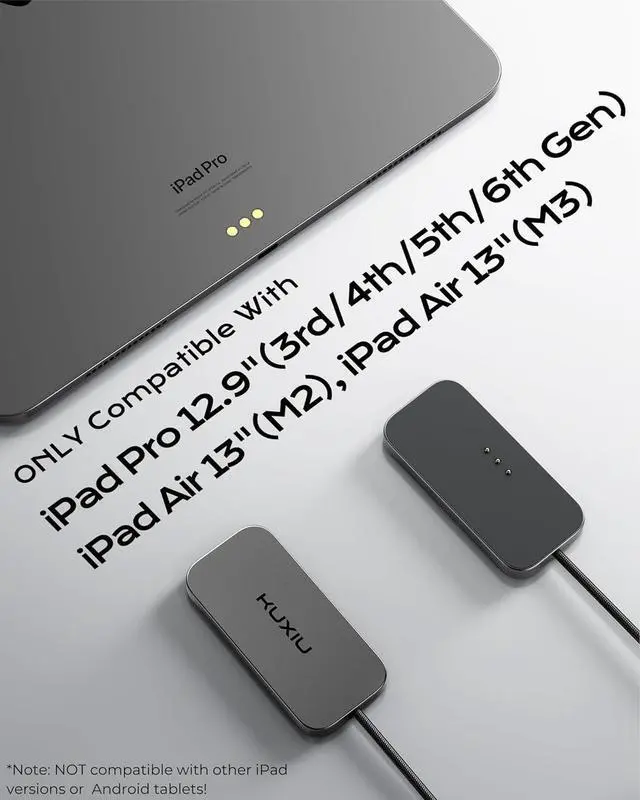 Compatibility: This magnetic wireless charger is exclusively compatible with iPad Air 13in M3 (2025) iPad Air 13in M2 (2024) and iPad Pro 12.9 in (3rd/4th/5th/6th Gen).