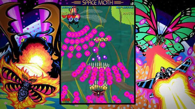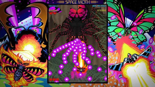 Space Moth will challenge you, fiercely. But Space Moth also wants to help you improve, so you can overcome those challenges. Your current condition (position, bombs and lives remaining) will be saved at the start of each stage and boss fight. Then if you lose all of your lives, you will be given the option to return to the condition recorded in the most recent save. But be warned: your score will be reset!