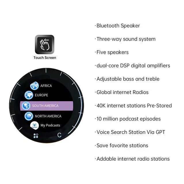 Voice-On-Demand & URL Support: Built-in GPT enables voice commands to play any radio station or podcast. You can also add custom stations by entering a valid URL, supporting all audio formats like mp3, AAC, and m3u8 for flexible operation.