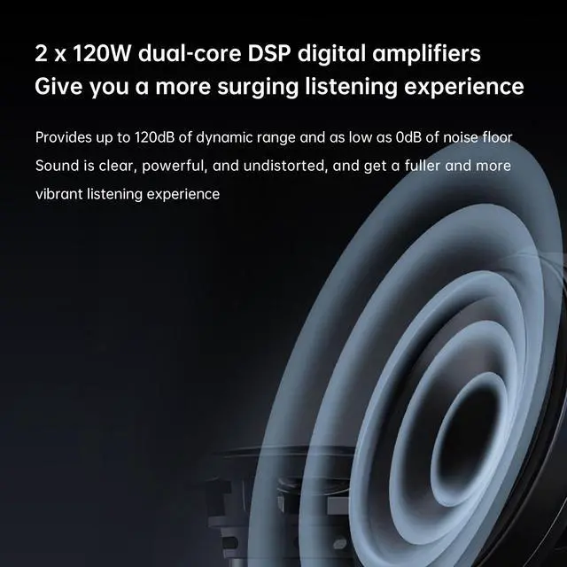 Dual-Core DSP Digital Amplifier: Offers up to 120dB dynamic range and as low as 0dB noise floor, ensuring clear, powerful, and undistorted sound. Adjustable bass and treble gain cater to all music genres, delivering a full and vibrant listening experience.