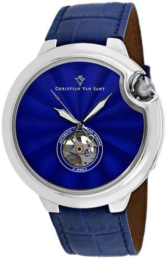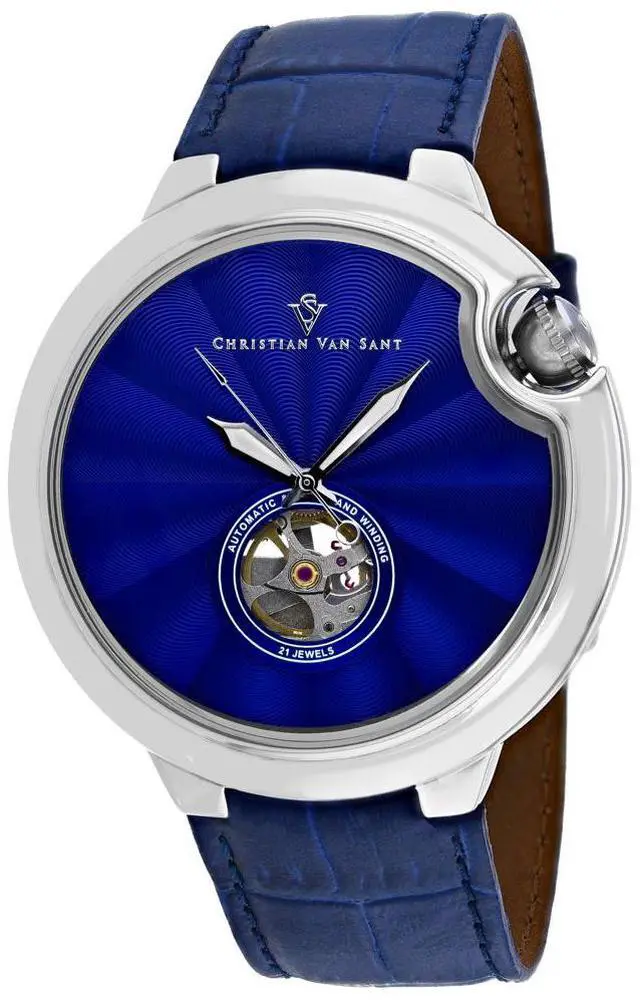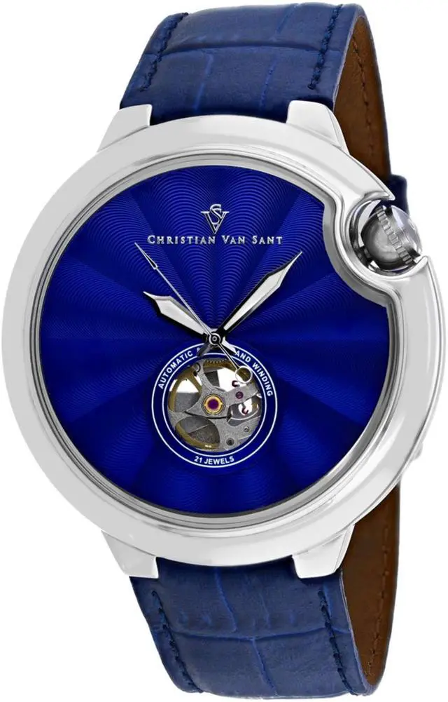 Christian Van Sant Men's Cyclone Automatic Stainless steel case, Leather strap, Blue dial, Automatic movement, Scratch resitant mineral, Water resistant up to 5 ATM - 50 meters - 165 feet
