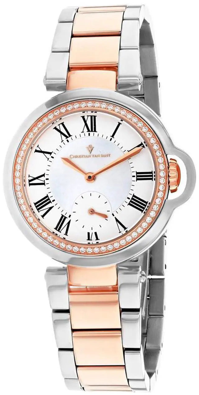 Stainless steel case, Stainless steel bracelet, White mother of pearl dial, Quartz movement, Scratch resistant mineral, Water resistant up to 3 ATM - 30 meters - 100 feet