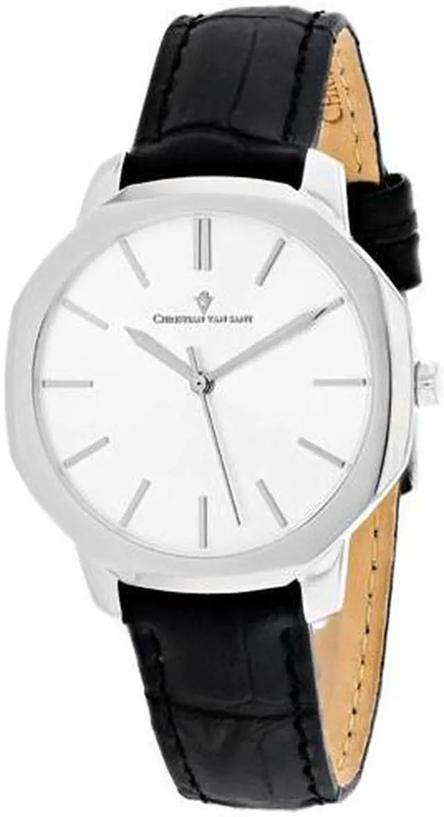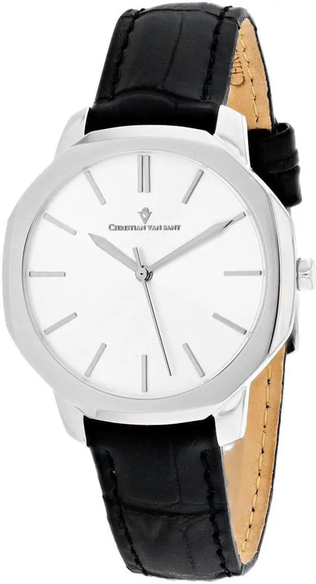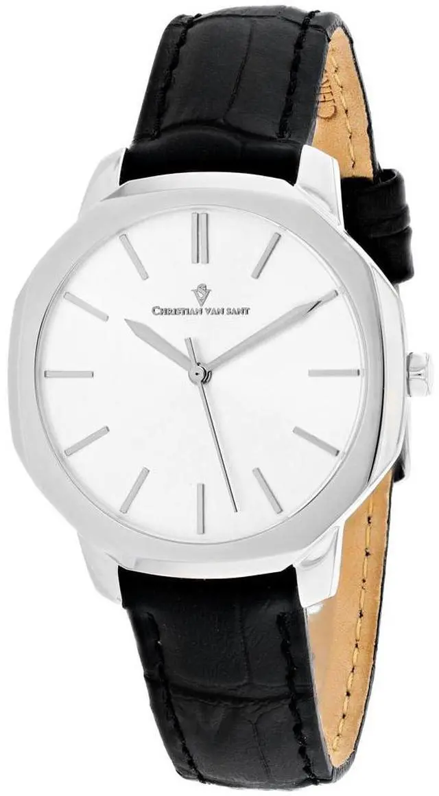 Christian Van Sant Women's Octave Slim Stainless steel case, Leather strap, Silver dial, Quartz Movement, Scratch resistant mineral, Water resistant up to 3 ATM - 30 meters - 100 feet