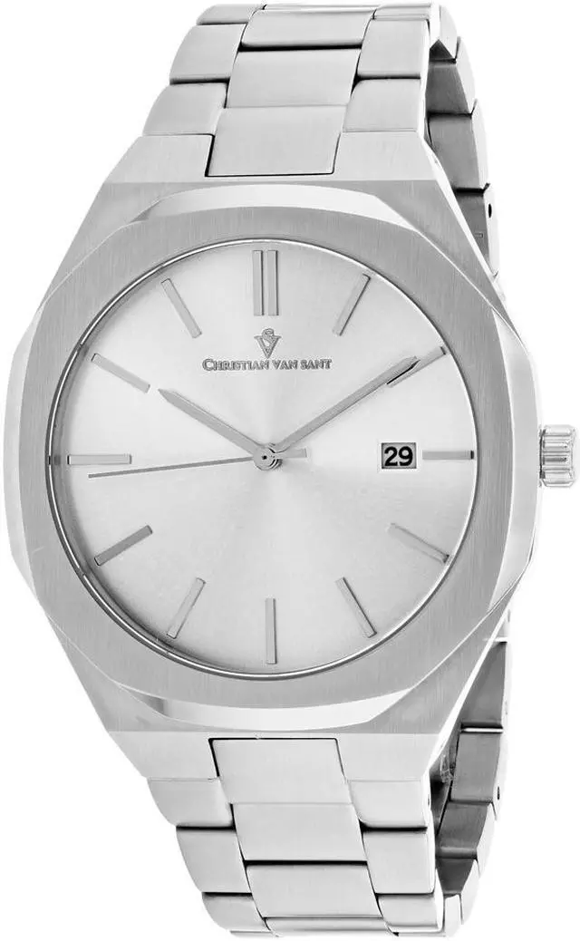 Christian Van Sant Men's Octavius Slim Stainless steel case, Stainless steel bracelet, Silver dial, Quartz movement, Scratch resistant mineral, Water resistant up to 3 ATM - 30 meters - 100 feet
