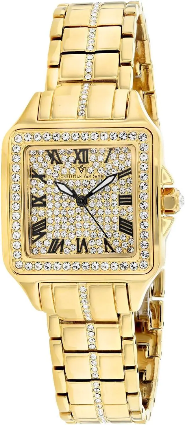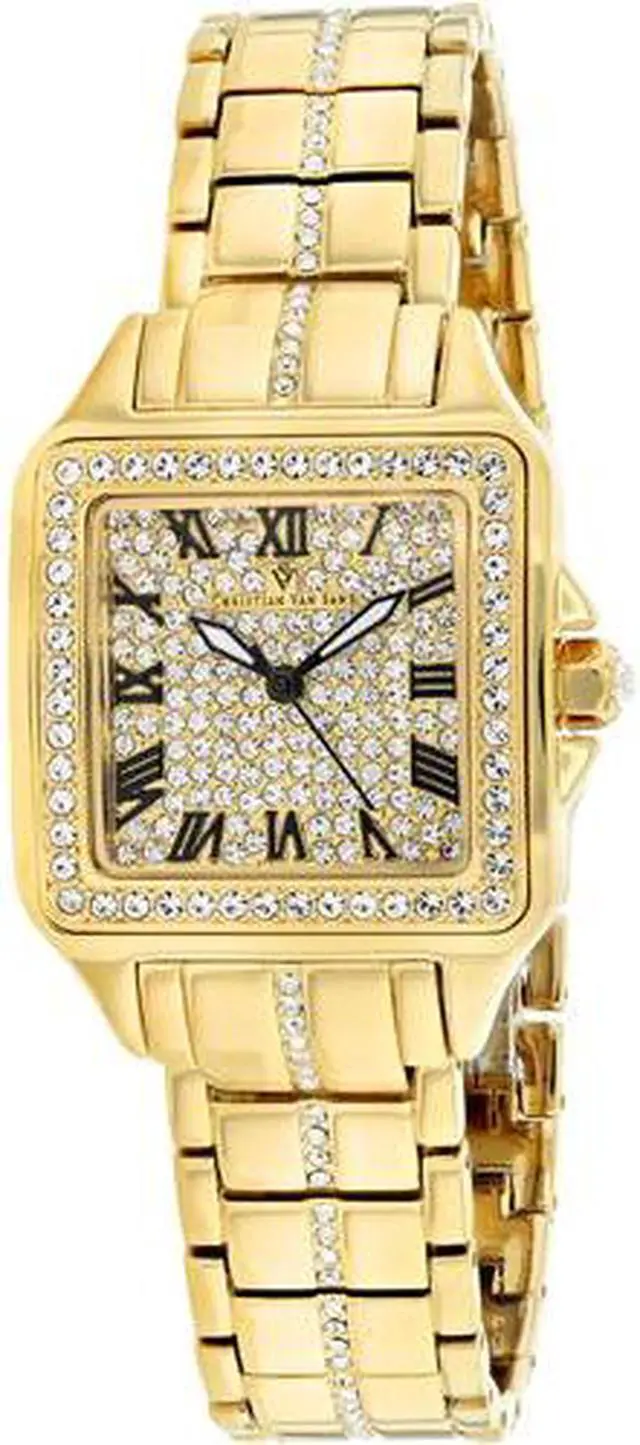 Christian Van Sant Women's Splendeur Brass case, Stainless steel case back, Stainless steel bracelet, Gold dial, Quartz movement, Scratch resistant mineral, Water resistant up to 3 ATM - 30 meters - 100 feet