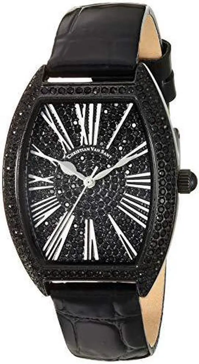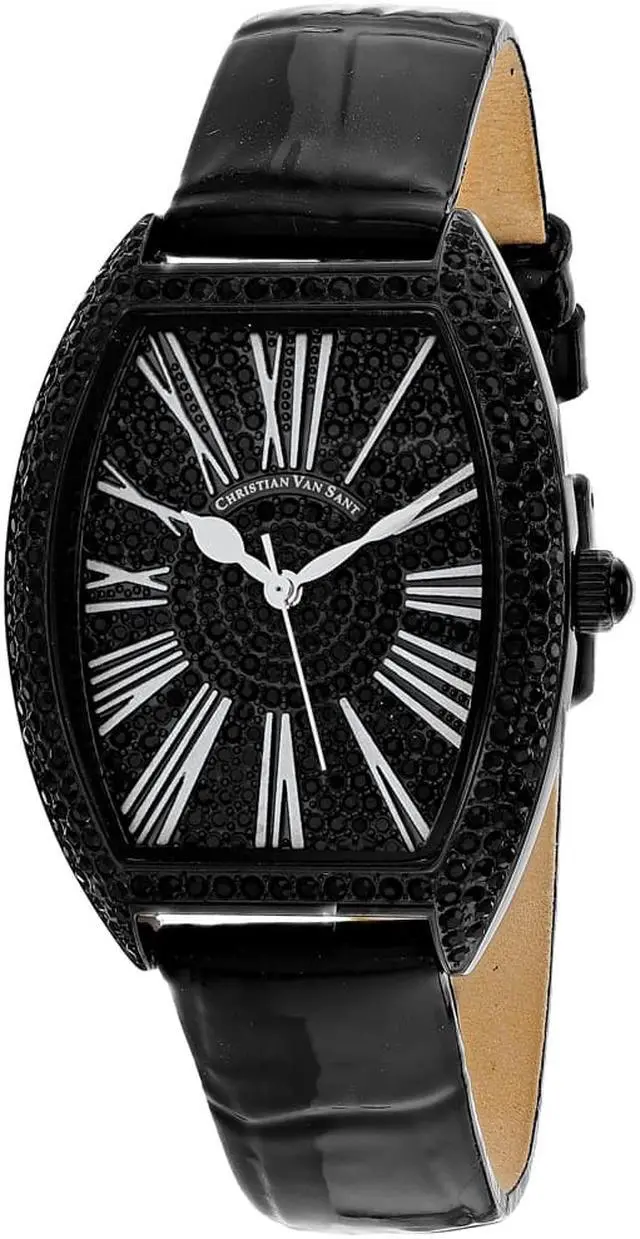 Christian Van Sant Women's Chic Stainless steel case, Leather strap, Black dial, Quartz movement, Scratch resistant mineral, Water resistant up to 3 ATM - 30 meters - 100 feet