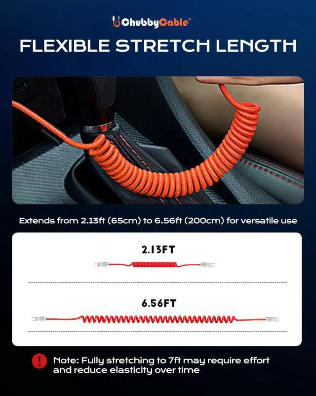 | Special Feature | 240W USB C Cable,480 Mbps Data Transfer,Support Carplay,Elastic Coiled Design,Fishnet Braided Material,Sturdy Aluminum Alloy,Tangle Free |