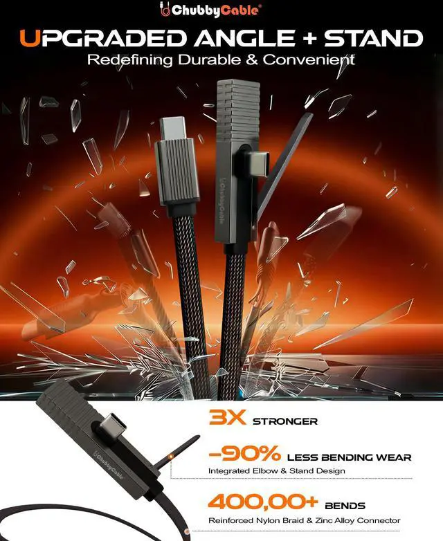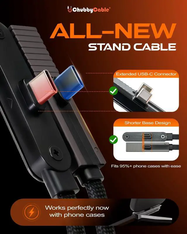 240W Ultra Fast Charge & Data Transfer: ChubbyCable StandLite Pro USB-C to USB-C cable supports up to 240W PD 3.1 ultra-fast charging and 480Mbps data transfer, delivering powerful and stable performance for phones, tablets, laptops, and other USB-C devices
