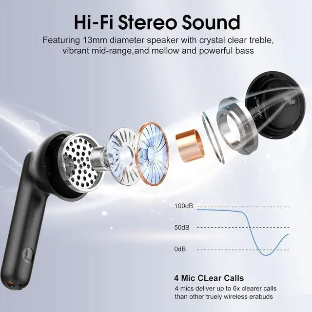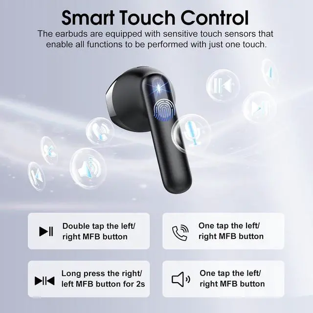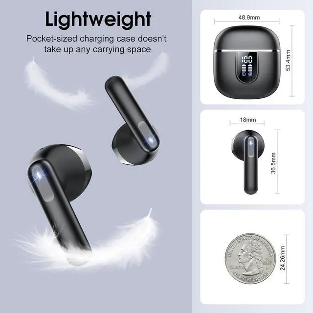 40H Extended Battery Life and Independent LED display: These wireless earbuds Bluetooth come with a smart LED display charging case, allowing you to check the remaining battery level at a glance. Enjoy up to 8 hours of playback on a single charge, and with the charging case, the total playback time extends to an impressive 40 hours. Type-C fast charging powers these noisecancelling earbuds fully in just 1.5 hoursideal for travel and busy workweeks