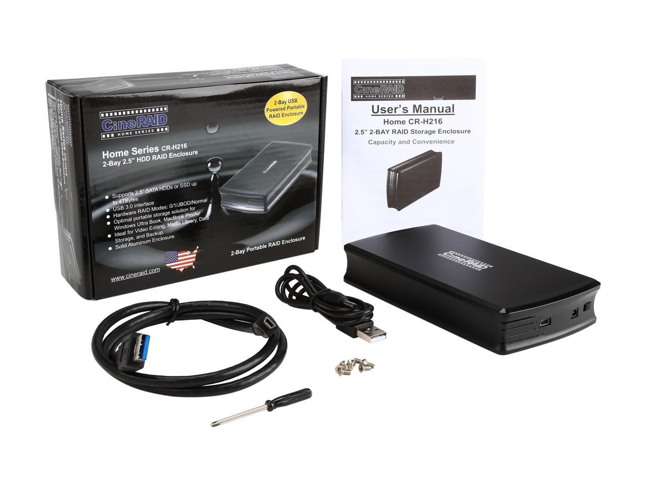 CineRAID CR-H216 RAID 0, 1, JBOD and Normal USB 3.0 + UASP (Backwards Compatible to USB 2.0) USB 3.0 + UASP Bus Powered Dual Drive RAID/JBOD Portable Enclosure (Disk-less)