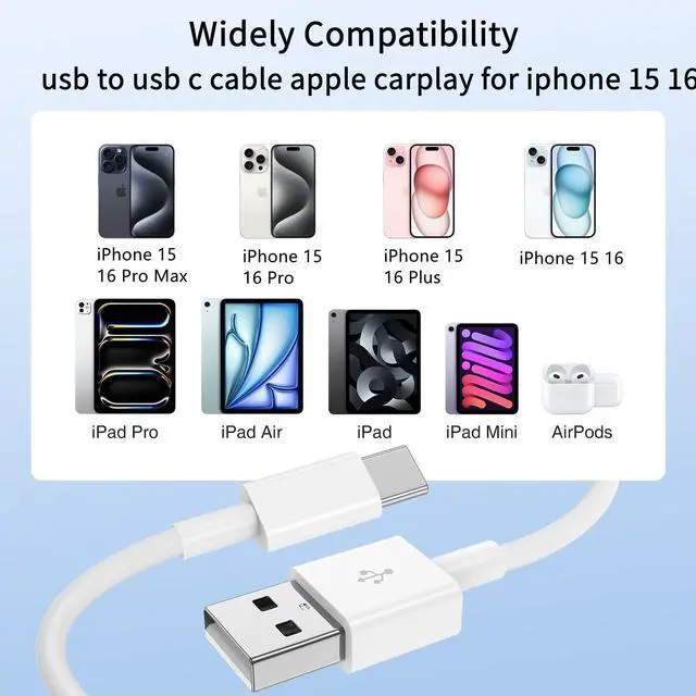 Car Carplay Cable for iPhone 17 16 15The car charger usb c cable enables convenient charging of your iphone 17 air/16 pro max/15 plus or other usb c devices while driving. You don't need to search for an adapter or carry a power bank. The iphone 17 16 15 car carplay cable cord 3ft is car essentials for road trips and daily commutes.