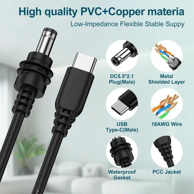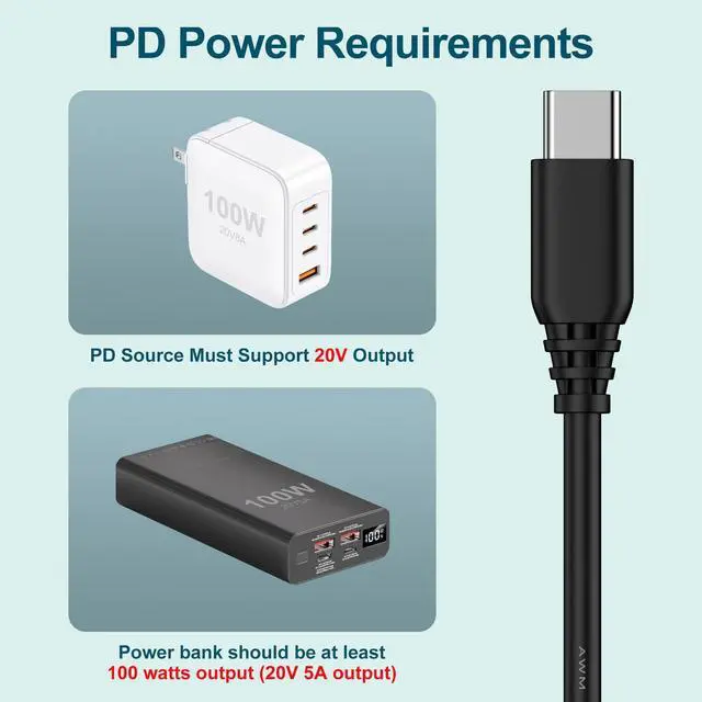 USB C to DC Cable built-in a PD smart chip, it can convert the PD Charger into DC 20V. It supports 20V 5A Max for for Starlink mini.