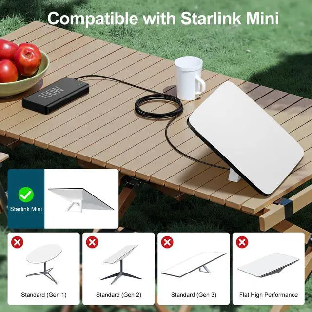 Simply connect the USB-C end to a 100W PD charger or power bank, and the DC end to your Starlink Mini.