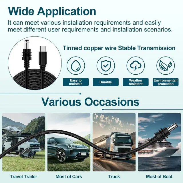 This 3-meter (10ft) USB-C to DC Starlink Mini cable provides extended reach for powering your satellite dish in any scenarioRV, camping, rooftop, or boat.