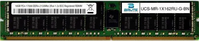 Cisco Compatible UCS-MR-1X162RU-G - 16GB PC4-17000 DDR4-2133Mhz 2Rx4 1.2v Registered RDIMM UCS-MR-1X162RU-G-BN is a Cisco compatible 16GB PC4-17000 DDR4-2133Mhz 2Rx4 1.2v Registered RDIMM, equivalent to Cisco labeled PN#: UCS-MR-1X162RU-G. Brute Networks modules are all major brand (Samsung, SK Hynix, or Micron). This module is guaranteed compatible with your server, as well as guaranteed to maintain your factory warranty, since Brute Networks modules are from the same manufacturers Cisco uses for their OEM branded modules.