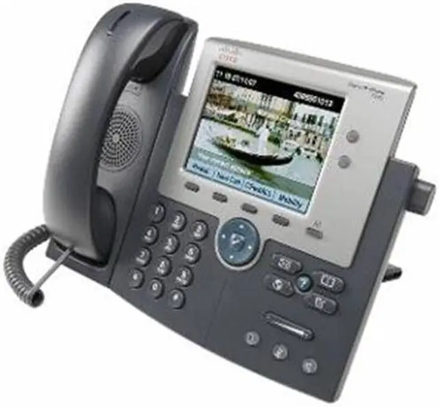 The Cisco Unified IP Phone 7945G demonstrates the latest advances in VoIP telephony, including wideband audio support, backlit color display, and an integrated Gigabit Ethernet port. It addresses the needs of transaction-type workers with significant phone traffic and the needs of those working with bandwidth-intensive applications on colocated PCs. This IP phone includes a large, backlit, easy-to-read color display for easy access to communication information, timesaving applications, and features such as date and time, calling party name, calling party number, digits dialed, and presence information. It also accommodates Extensible Markup Language (XML) applications that take advantage of the display. The phone provides direct access to two telephone lines (or combination of lines, speed dials, and direct access to telephony features), four interactive soft keys that guide you through call features and functions, and an intuitive four-way (plus Select key) navigation cluster. A hands-free speakerphone and handset designed for high-fidelity wideband audio are standard, as is a built-in headset connection.