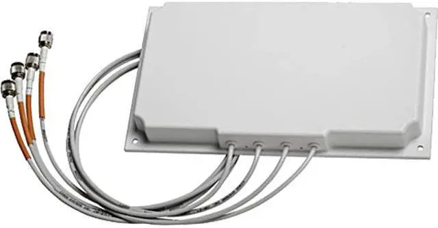 | Specifications | Antenna type: 4-element dual-band MIMO Operating frequency range - 2400 to 2484 MHz - 5150–5850 MHz VSWR: 2:1 or less Gain: 6 dBi in both bands Polarization: Linear, vertical Azimuth Plane 3-dB Beamwidth - 2.4 GHz band: 105° - 5 GHz band: 110° Elevation Plane 3-dB Beamwidth - 2.4 GHz band: 65° - 5 GHz band: 55° Dimension: 6.30" x 11.00" x 1.20" Weight: 1.40 lbs. Cable length and type: 3 ft. (91.4 cm) plenum rated Connector: RP-TNC Environment: Indoor/outdoor |