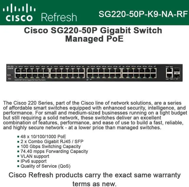 Cisco Small Business 220 series smart plus switches bridge the gap between managed and smart switches to offer customers the best of both worlds. Combining powerful performance with reliability, they provide the higher levels of security, management, and scalability you expect from managed switches, affordably priced like smart switches