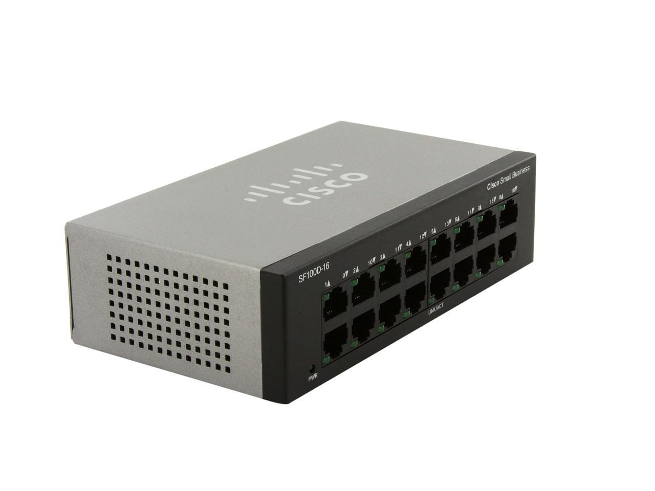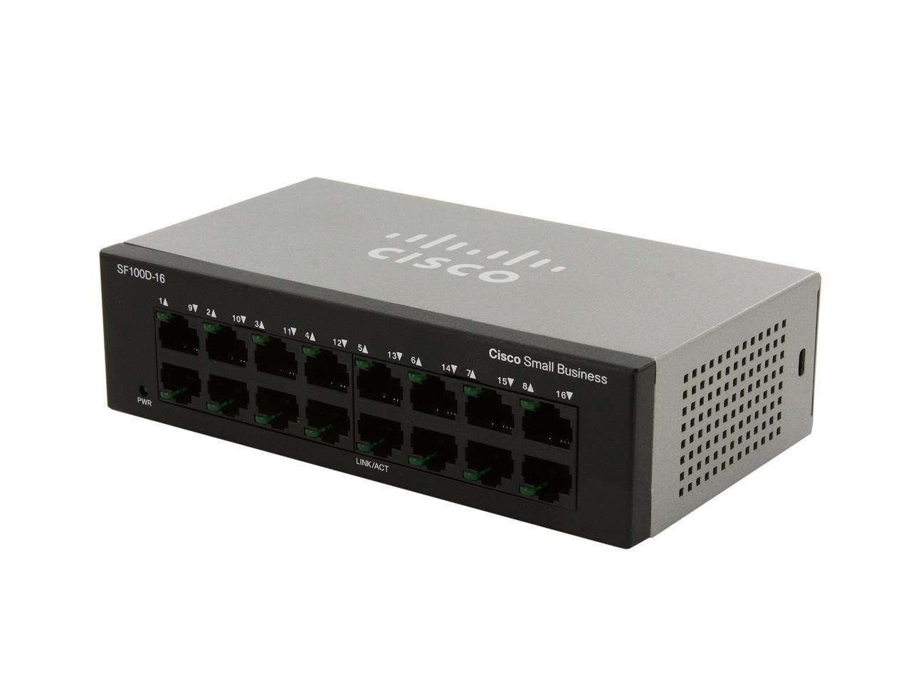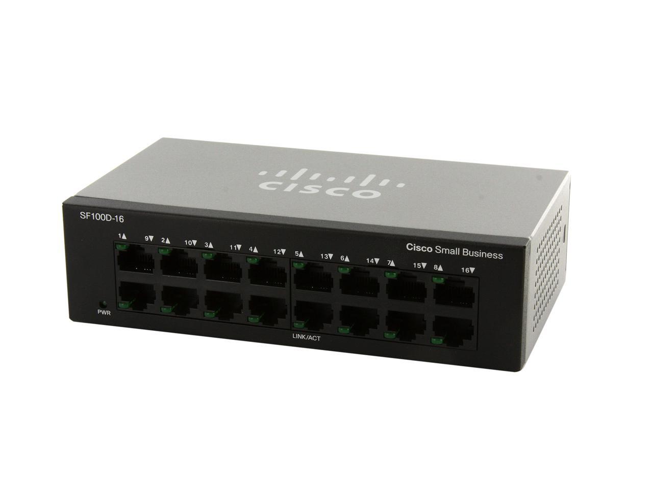 The Cisco SF100D-16 16-Port 10/100 Switch is an unmanaged switch that offers the performance and ease of use needed to connect small businesses. Use this desktop switch to connect up to 16 computers, printers, or wireless access points to the network, as well as to share network resources such as servers and network-attached storage. The switch works right out of the box and does not require any management or configuration. Quality of service (QoS) enhances network performance and improves voice and video quality. The switch optimizes power efficiency and features Energy Efficient Ethernet, which reduces energy consumption without compromising performance. The Cisco SF100D-16 delivers the reliability and performance needed to keep the network running smoothly and is protected by a limited lifetime warranty.