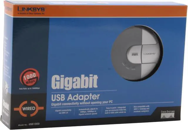 Cisco Small Business USB1000 Gigabit Adapter 10/100/1000Mbps USB 2.0 1 x RJ45