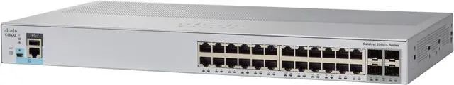 Cisco® Catalyst® 2960-L Series Switches are fixed-configuration, Gigabit Ethernet switches that provide Layer 2 and basic Layer 3 enterprise-class access switching for branch offices, conventional workspaces, and out-of-the-wiring-closet applications. These Cisco IOS® Software based switches are fanless, easy to use, energy efficient, cost-effective, reliable, and secure. Product highlights Cisco Catalyst 2960-L switches feature: 8, 16, 24, or 48 Gigabit Ethernet ports with line-rate forwarding 4 Enhanced Small Form-Factor Pluggable (SFP+) uplinks 2 or 4 Gigabit Small Form-Factor Pluggable (SFP) uplinks Basic routing features: Static routing and Routing Information Protocol (RIP) Power over Ethernet Plus (PoE+) support with up to 370W of power budget Perpetual PoE provides uninterrupted power to connected devices even when the switch is booting Fanless operation and operational temperature up to 45°C for deployment outside the wiring closet Higher Mean Time Between Failure (MTBF) because they have no moving mechanical parts Less than 11.5-inch depth fit in use cases with space limitation Reduced power consumption and advanced energy management features RJ45 and USB console access for simplified operations Intuitive web UI for easy deployment and management Over-the-air configuration and management via Bluetooth interface Enhanced Limited Lifetime Warranty (E-LLW) offering next-business-day hardware replacement Product Type: Ethernet Switch Power Source: Power Supply Layer Supported: 4 Product Type: Ethernet Switch Manufacturer Part Number: WS-C2960L-24TQ-LL Power Source: Power Supply Layer Supported: 4 Weight (Approximate): 6.06 lb Network Technology: 10GBase-X Network Technology: 10/100/1000Base-T Manufacturer: Cisco Systems, Inc Product Model: WS-C2960L-24TQ-LL Product Name: Catalyst WS-C2960L-24TQ-LL Ethernet Switch Network Technology: 10GBase-X Network Technology: 10/100/1000Base-T Product Line: Catalyst Brand Name: Cisco Product Series: 2960-L Brand Name: Cisco Expansion Slot Type: SFP+ Expansion Slot Type: SFP+ Height: 1.7 Width: 17.5 Depth: 9.5 Manageable: Yes Ethernet Technology: 10 Gigabit Ethernet Ethernet Technology: Gigabit Ethernet Number of Total Expansion Slots: 4 Product Family: Catalyst 2960-L Stack Port: No Media Type Supported: Optical Fiber Media Type Supported: Twisted Pair Total Number of Network Ports: 24 Port/Expansion Slot Details: 10 Gigabit Ethernet Port/Expansion Slot Details: Gigabit Ethernet Manageable: Yes Ethernet Technology: 10 Gigabit Ethernet Ethernet Technology: Gigabit Ethernet Number of Total Expansion Slots: 4 Number of SFP+ Slots: 4 Modular: Yes Uplink Port: Yes Stack Port: No Media Type Supported: Optical Fiber Media Type Supported: Twisted Pair Total Number of Network Ports: 24 Shared SFP Slot: No Port/Expansion Slot Details: 4 x 10 Gigabit Ethernet Uplink Port/Expansion Slot Details: 24 x Gigabit Ethernet Network