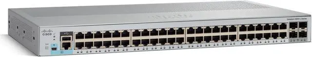 Cisco® Catalyst® 2960-L Series Switches are fixed-configuration, Gigabit Ethernet switches that provide Layer 2 and basic Layer 3 enterprise-class access switching for branch offices, conventional workspaces, and out-of-the-wiring-closet applications. These Cisco IOS® Software based switches are fanless, easy to use, energy efficient, cost-effective, reliable, and secure. Product highlights Cisco Catalyst 2960-L switches feature: 8, 16, 24, or 48 Gigabit Ethernet ports with line-rate forwarding 4 Enhanced Small Form-Factor Pluggable (SFP+) uplinks 2 or 4 Gigabit Small Form-Factor Pluggable (SFP) uplinks Basic routing features: Static routing and Routing Information Protocol (RIP) Power over Ethernet Plus (PoE+) support with up to 370W of power budget Perpetual PoE provides uninterrupted power to connected devices even when the switch is booting Fanless operation and operational temperature up to 45°C for deployment outside the wiring closet Higher Mean Time Between Failure (MTBF) because they have no moving mechanical parts Less than 11.5-inch depth fit in use cases with space limitation Reduced power consumption and advanced energy management features RJ45 and USB console access for simplified operations Intuitive web UI for easy deployment and management Over-the-air configuration and management via Bluetooth interface Enhanced Limited Lifetime Warranty (E-LLW) offering next-business-day hardware replacement Product Type: Ethernet Switch Power Source: Power Supply Layer Supported: 4 Product Type: Ethernet Switch Manufacturer Part Number: WS-C2960L-48PQ-LL Power Source: Power Supply Layer Supported: 4 Weight (Approximate): 9.81 lb Network Technology: 10GBase-X Network Technology: 10/100/1000Base-T Manufacturer: Cisco Systems, Inc Product Model: WS-C2960L-48PQ-LL Product Name: Catalyst WS-C2960L-48PQ-LL Ethernet Switch Network Technology: 10GBase-X Network Technology: 10/100/1000Base-T Product Line: Catalyst Brand Name: Cisco Product Series: 2960-L Brand Name: Cisco Expansion Slot Type: SFP+ Expansion Slot Type: SFP+ Height: 1.7 Width: 17.5 Depth: 11.5 Manageable: Yes Ethernet Technology: 10 Gigabit Ethernet Ethernet Technology: Gigabit Ethernet Number of Total Expansion Slots: 4 Product Family: Catalyst 2960-L Stack Port: No Media Type Supported: Optical Fiber Media Type Supported: Twisted Pair Total Number of Network Ports: 48 Port/Expansion Slot Details: 10 Gigabit Ethernet Port/Expansion Slot Details: Gigabit Ethernet Manageable: Yes Ethernet Technology: 10 Gigabit Ethernet Ethernet Technology: Gigabit Ethernet Number of Total Expansion Slots: 4 Number of SFP+ Slots: 4 Modular: Yes Uplink Port: Yes Stack Port: No Media Type Supported: Optical Fiber Media Type Supported: Twisted Pair Total Number of Network Ports: 48 Shared SFP Slot: No Port/Expansion Slot Details: 4 x 10 Gigabit Ethernet Uplink Port/Expansion Slot Details: 48 x Gigabit Ethernet Network