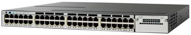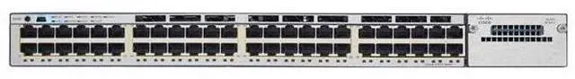Switch - 48 ports - Ethernet Fast Ethernet Gigabit Ethernet - 10Base-T 100Base-TX 1000Base-T + 1 x Expansion Slot (empty) - 1U - PoE - rack-mountable - stackable. Device Type: Switch stackable. Form Factor: Rack-mountable 1U. Dimensions: 17.5" x 18.1" x 1.8". Weight: 16.5 lbs. RAM: 256 MB. Flash Memory: 128 MB. Ports Qty: 48 x Ethernet 10Base-T Ethernet 100Base-TX Ethernet 1000Base-T. Data Transfer Rate: 1 Gbps. Data Link Protocol: Ethernet Fast Ethernet Gigabit Ethernet. Empty Slots: 1 x Expansion Slot. Remote Management Protocol: SNMP 1 SNMP 2 RMON 1 RMON 2 RMON 3 RMON 9 Telnet SNMP 3 SNMP 2c FTP TFTP SSH. Communication Mode: Half-duplex full-duplex. Features: Hot swap module replacement layer 3 switching layer 2 switching dynamic IP address assignment DHCP support power over Ethernet (PoE) auto-negotiation ARP support trunking VLAN support auto-uplink (auto MDI/MDI-X) IGMP snooping Syslog support traffic shaping Broadcast Storm Control High Availability Multicast Storm Control Unicast Storm Control Rapid Spanning Tree Protocol (RSTP) support DHCP snooping Dynamic Trunking Protocol (DTP) support Port Aggregation Protocol (PAgP) support Access Control List (ACL) support Quality of Service (QoS) Jumbo Frames support MLD snooping Dynamic ARP Inspection (DAI) PoE+ Per-VLAN Spanning Tree Plus (PVST+). Compliant Standards: IEEE 802.3 IEEE 802.3u IEEE 802.3z IEEE 802.1D IEEE 802.1Q IEEE 802.3ab IEEE 802.1p IEEE 802.3af IEEE 802.3x IEEE 802.3ad (LACP) IEEE 802.1w IEEE 802.1x IEEE 802.1s IEEE 802.1ae IEEE 802.3at. Power Over Ethernet (PoE): Yes. Power: AC 120/230 V ( 50/60 Hz ). Manufacturer Warranty: Limited lifetime warranty. Power Redundancy: Optional.