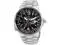 A serious timepiece for the serious watch collector, the Citizen BJ7000-52E stainless steel men's watch offers powerful timekeeping functions for your favorite aeronaut. The large round watch case measures approximately 43mm in diameter. It has a thin silver bezel the houses a black dial with a pilot's inner rotating slide rule bezel, which is operated by the secondary crown at 8 o'clock. It has large luminous hands and markers for readability and low-light visibility and dual time (GMT) capability. The triple link bracelet band is composed of brushed silver stainless steel pieces, and it's joined by a push-button folding safety clasp. Other features include a water resistance to 660 feet (200 meters), low-charge indicator window, power saver function, and a scratch-resistant, non-reflective mineral crystal.