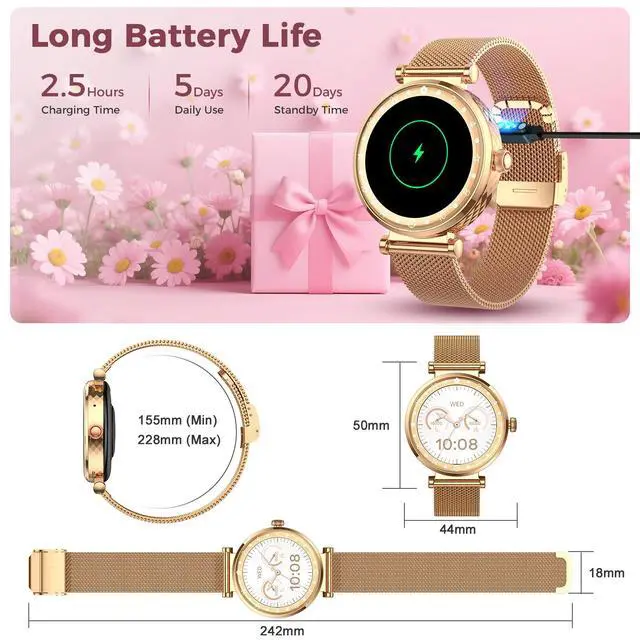 110+ Sports Modes & IP68 Waterproof: This watch for women has more than 110 exercise modes (running, cycling, hiking, jumping rope, dancing, yoga, etc.). It records steps, distance, calories and more in real time to help users exercise scientifically and get better results. This watch for women also has an IP68 water resistance rating, so you don't have to worry about sweat or rain damaging it.
