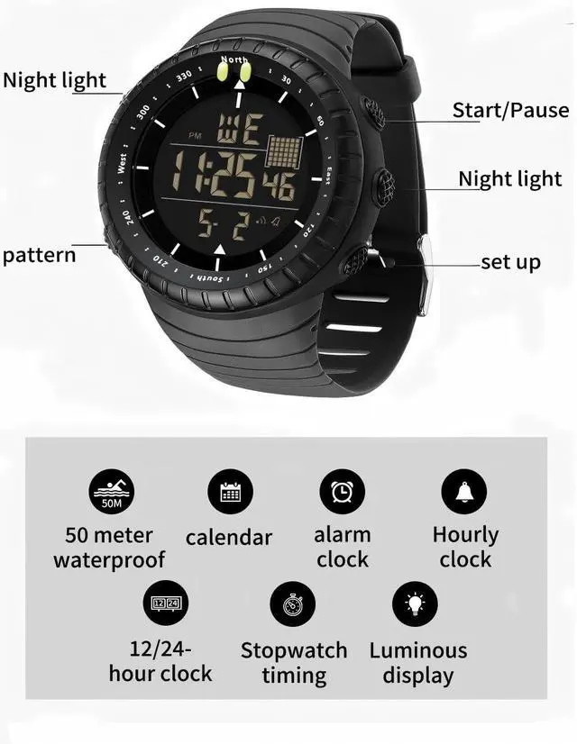 LED digital military watch for men