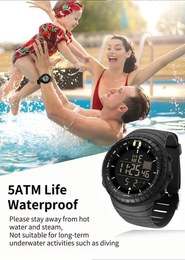 5ATM waterproof watch : Don't worry about touching the water by mistake or when you are washing something.
