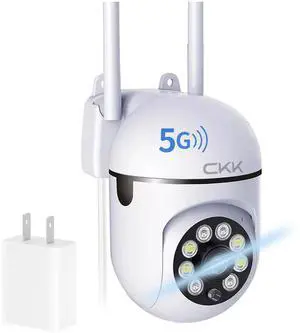 CKK 1080P Security Camera Outdoor Corded Power, 2MP PTZ WiFi Home Camera (2.4G/5G Dual-Band), 360 Pan/Tilt, Color Night Vision, Motion Alerts, 2-Way Audio, Compatible with Alexa, SD/Cloud Storage