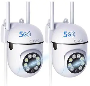CKK 2K Security Cameras Outdoor 2Pack, 2.4G/5G Wireless Home Security Cameras, 360 PTZ, PIR Motion Detection, Color Night Vision, 2-Way Talk, Waterproof, Audible & Floodlight Alarm, Works with Alexa