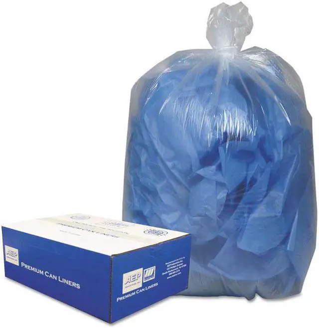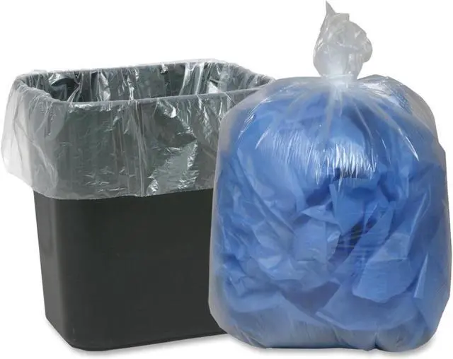 Low density resin blends improve bag strength and elasticity to resist punctures. Ideal for indoor or outdoor receptacles containing heavy, wet trash. Clear liners allow contents to show to deter pilferage and are great for recycling. Star-sealed bottom construction distributes weight more evenly and resists leaks. Coreless rolls for convenient dispensing.