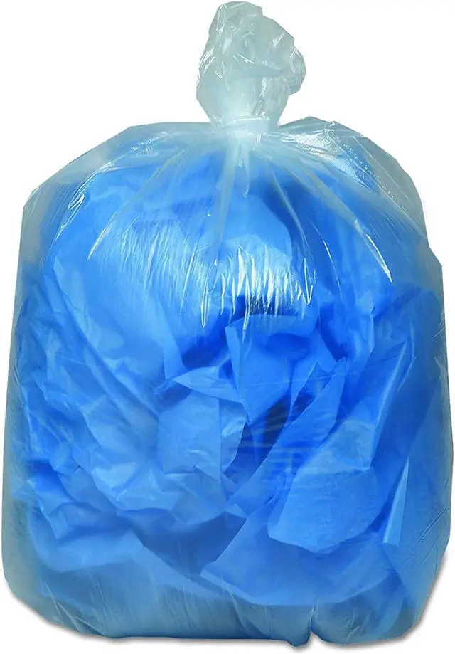 Low density resin blends improve bag strength and elasticity to resist punctures. Ideal for indoor or outdoor receptacles containing heavy, wet trash. Clear liners allow contents to show to deter pilferage and are great for recycling. Star-sealed bottom construction distributes weight more evenly and resists leaks. Coreless rolls for convenient dispensing.