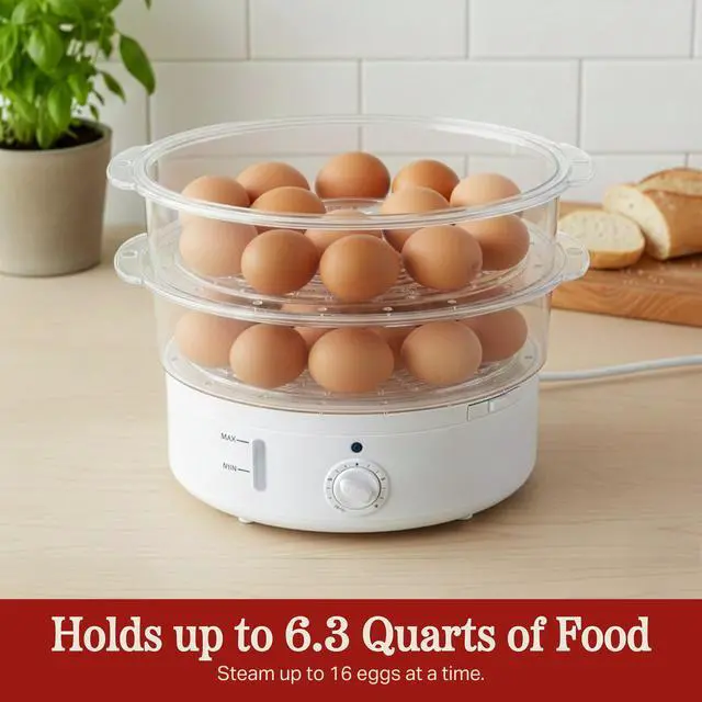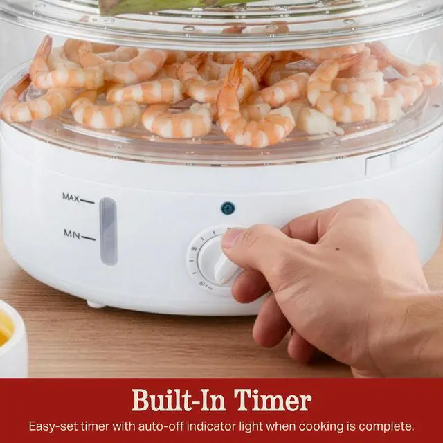 This versatile 2-tiered food steamer is the ultimate solution for cooking healthy and delicious meals with one convenient kitchen appliance. The see-through steamer tiers allow you to easily view the food inside, so you can check the cooking progress without having to open the lid. Cook all your favorite meats, seafood, grains, and veggies with this 2-in-1 cooking appliance to save time and avoid calories from added fat.