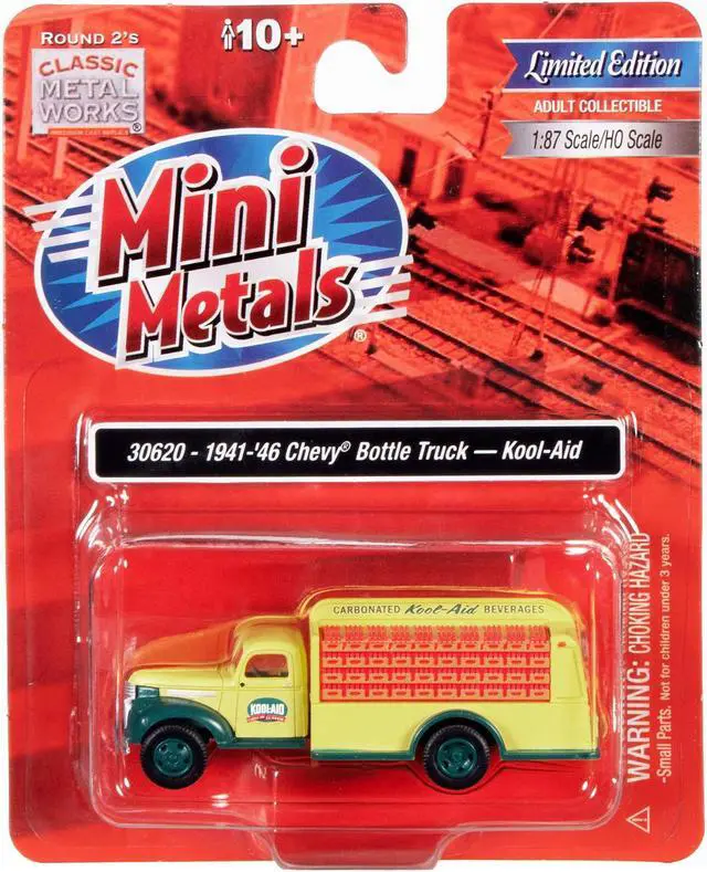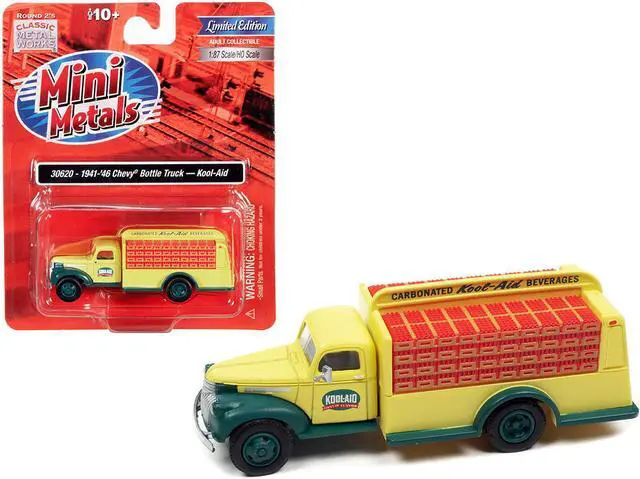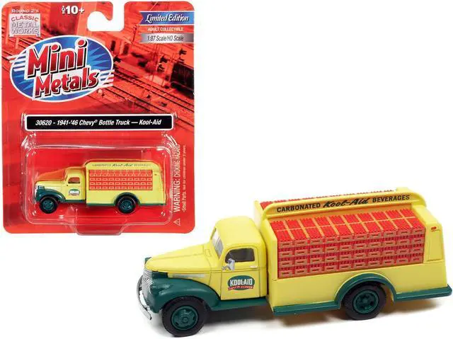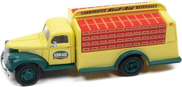 Brand new 1/87 (HO) scale truck model of 1941-1946 Chevrolet Delivery Bottle Truck Yellow and Green "Kool-Aid" model truck by Classic Metal Works.