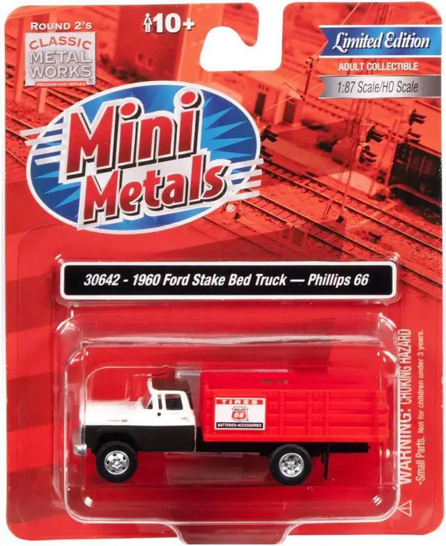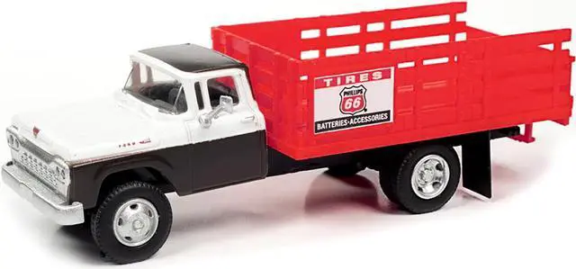 Brand new 1/87 (HO) scale car model of 1960 Ford Stake Bed Truck "Phillips 66" Black and White with Red Stakes model car by Classic Metal Works.