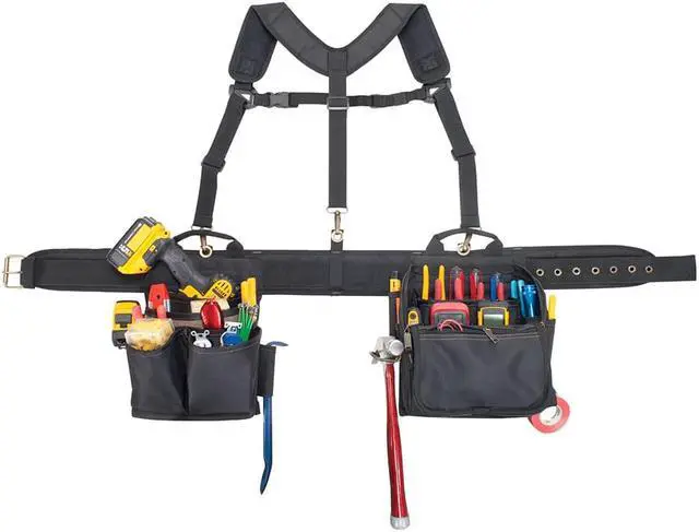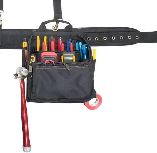 You can never have too many pockets when it comes to carrying your tools. The CLC 1608 Black Polyester Tool Belt has 28 of them for you to choose from. This tool belt features a polyester construction, making it durable and long lasting. It also has an adjustable waist size, so you can get the perfect fit every time. With its black color, this tool belt will complement any work outfit. Its material is easy to clean and maintain, so it will always look new after being cleaned with soap and water.
