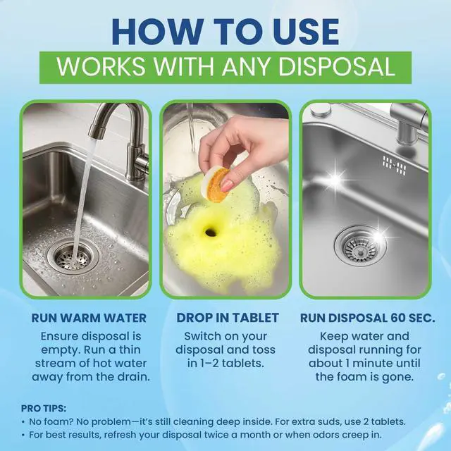 Yes. Turn on warm water and run the disposal for about 60 seconds while the tablet foams. The spinning action helps distribute the expanding foam throughout the chamber for more effective cleaning.