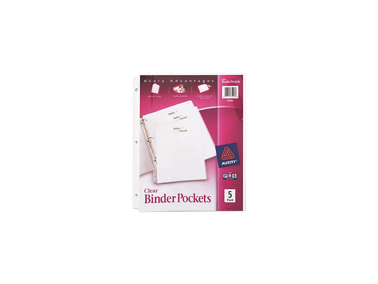 Avery AVE75243 Binder Pockets, 3-Hole Punched, 9 1/4 x 11, Clear, 5/Pack