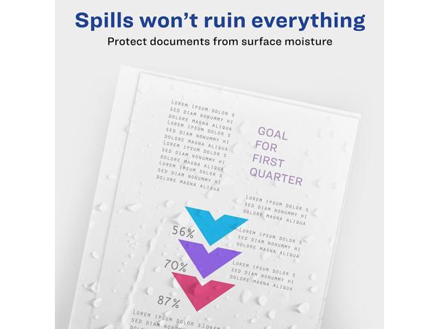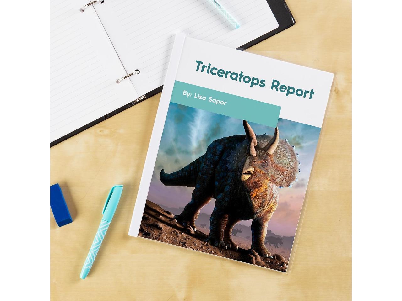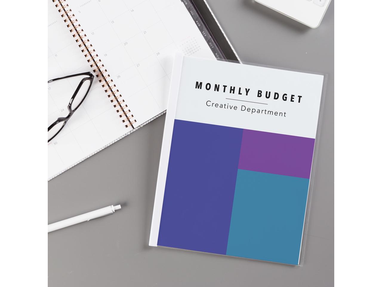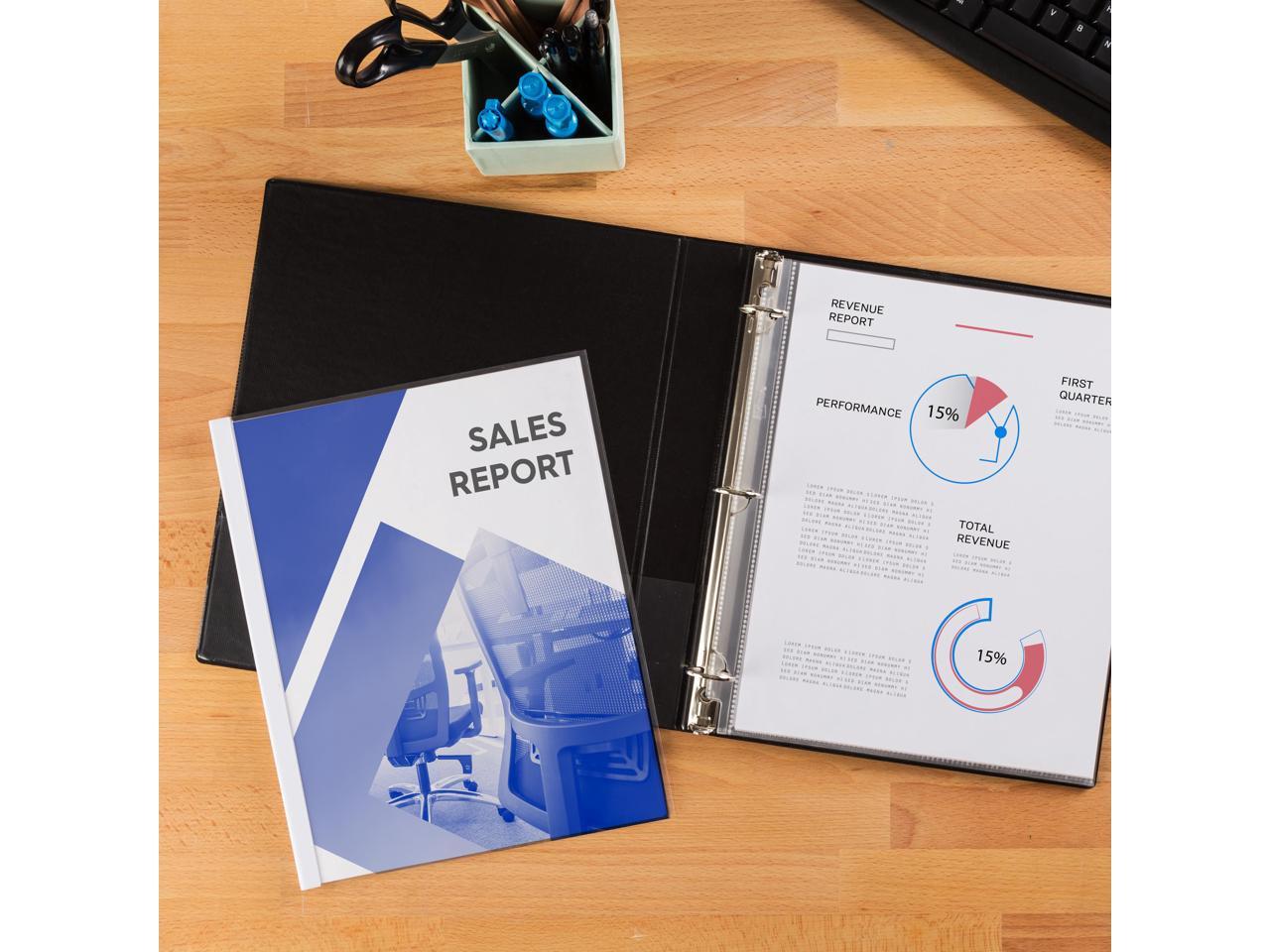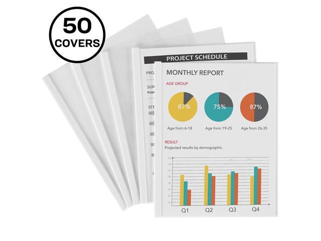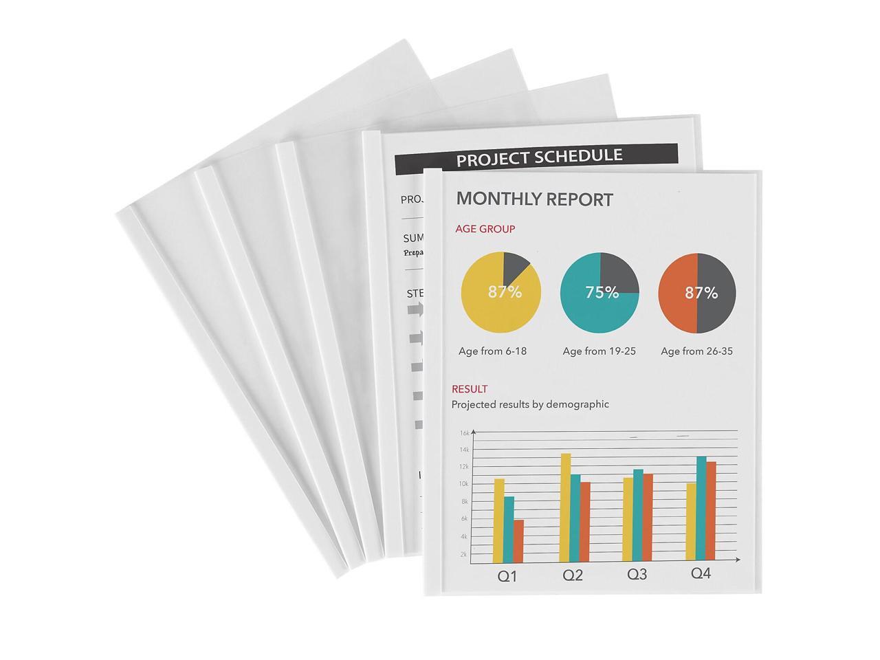 Slide locking poly clear report covers. For a clean professional look, the two-sided clear report cover helps protect your report from bends, dings, surface moisture, and rips. Present a personalized report as the clear portfolio folder can easily display a customizable cover page.