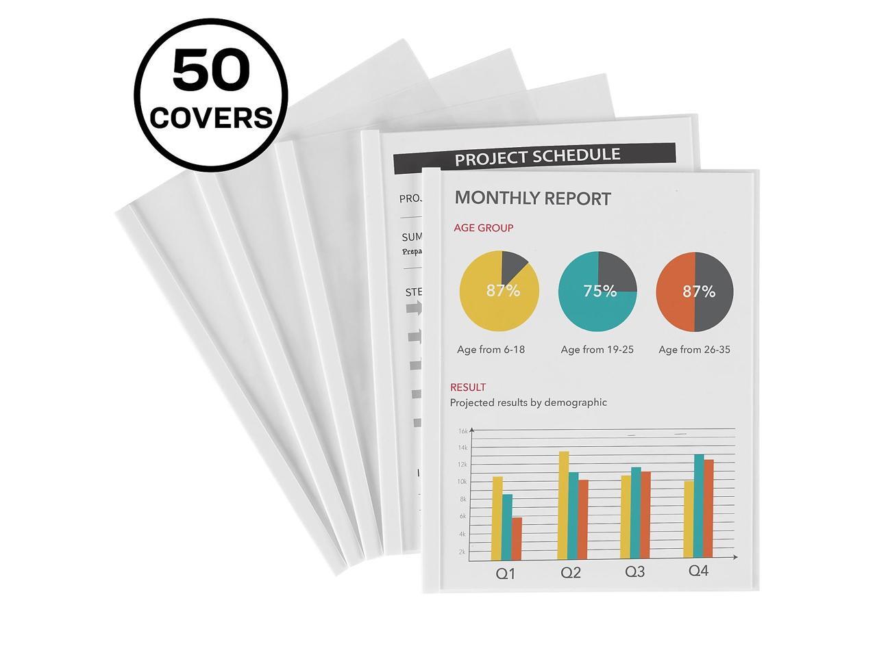 50 report covers per pack. These durable and portable report covers with sliding bars can hold up t